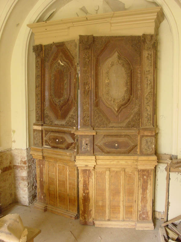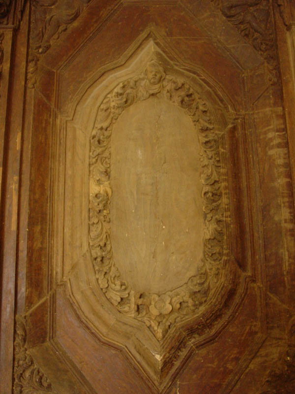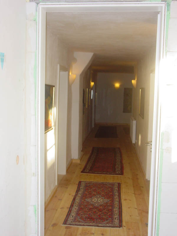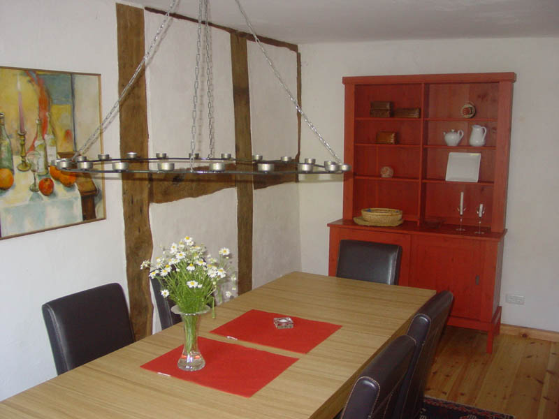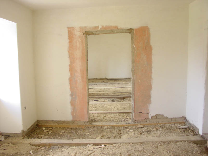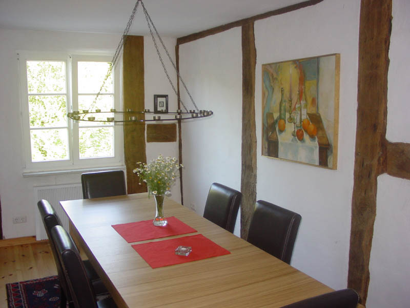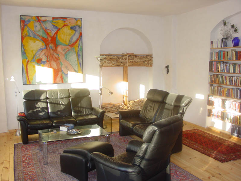 Door between dining room and tower in large apartment with towers in the lower floor.
