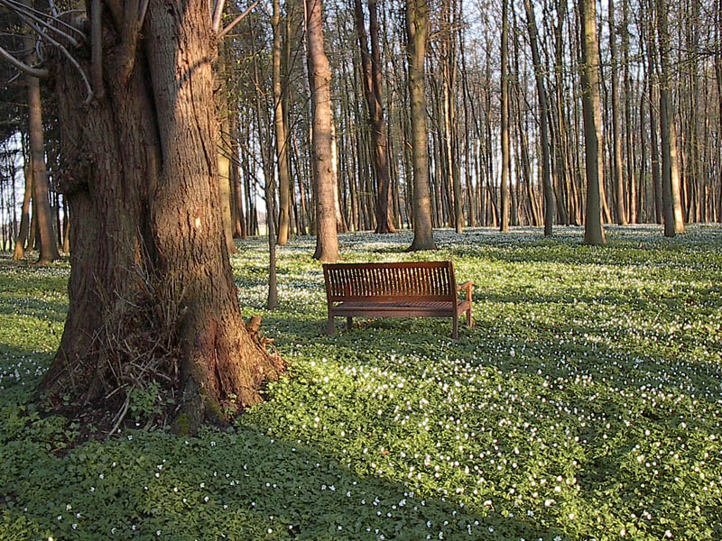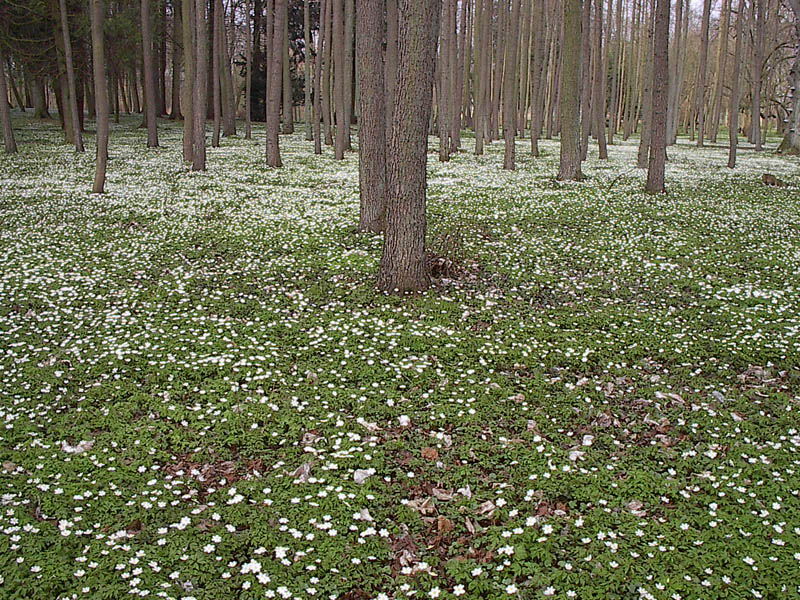 A carpet of white flowers in the spring.